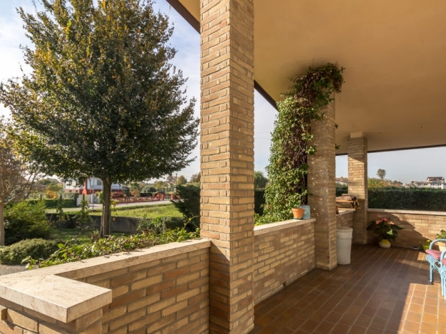Porzione di biVilla con ingresso indipendente, con un giardino privato di circa 600 mq, composta a piano seminterrato da 1 grande garage/Taverna per 2 auto, a piano rialzato da 1 portico di ingresso, 1 ampia stanza di ingresso, 1 bagno /Wc, 1 cucina pranzo separata abitabile, 1 ampio salone giorno con caminetto e a piano primo da 4 camere, 1 bagno. E’ orientata a Sud Ovest Nord Est, le finestre sono con vetrocamera, riscaldamento autonomo a gas metano con termosifoni, allacciata alle fognature comunali, alla rete idrica, alla rete di energia elettrica e gas metano. L’agente immobiliare ing siro stradiotto di telefono 335398918 è lieto di condurvi in visita anche in orari pasto e nei giorni festivi previo appuntamento al telefono 335398918. Porzione di bifamiliare con ingresso indipendente, con un giardino privato di circa 600 mq, composta a piano seminterrato da 1 grande garage/Taverna per 2 auto, a piano rialzato da 1 portico di ingresso, 1 ampio ingresso, 1 bagno /Wc, 1 cucina pranzo, 1 ampio salone giorno e a piano primo da 3 camere, 1 stireria, 1 bagno.