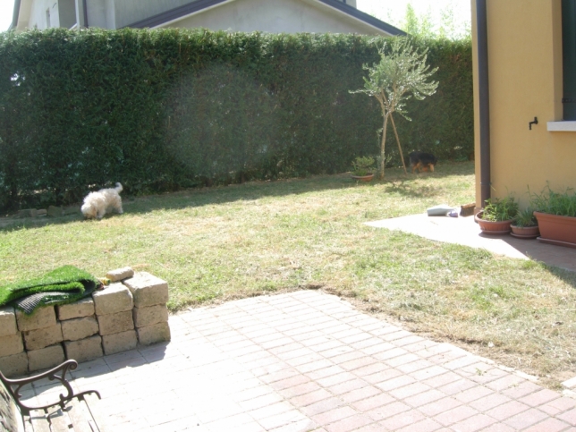 Camponogara (Ve) Graziosa Porzione di Bivilla di Recente Costruzione ( anno 2006) esposta tutta a Sud Est Ovest con 200 mq di Giardino Privato , Soggiorno, Cucina Abitabile, Due Bagni con Finestra , Due Ripostigli, Tre Camere , Portico, Loggia e Garage . Soffitti con Travi a Vista , Aria Condizionata Estiva, Riscaldamento Autonomo , Ottime qualità delle finiture .
