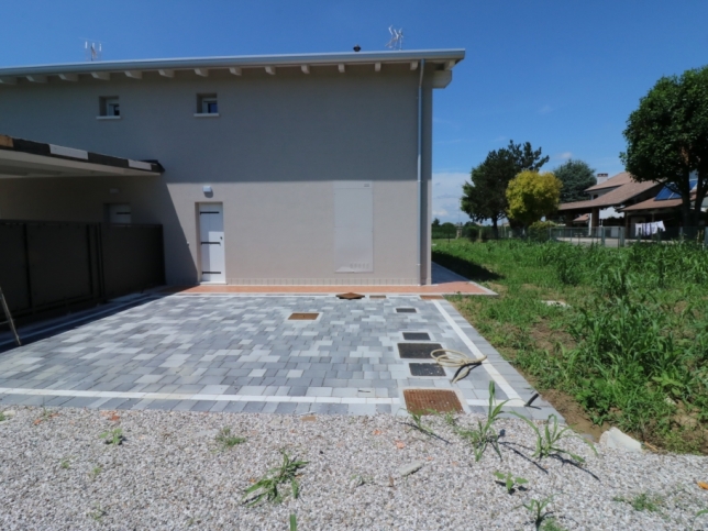 Nuova Porzione di Villa con Grande Giardino 600 mq , che sarà Consegnata Finita Completamente con finiture a scelta Acquirente .Possibilità di Fornire Tettoia a copertura di 2 Posti Auto Esterni. E' composta a piano terra da Soggiorno , Cucina - Pranzo , Bagno , Lavanderia ; a piano primo da 3 Stanze , Bagno , Ripostiglio e Terrazza . E' dotata di Solare Termico, Pannelli Fotovoltaici , impianto di Riscaldamento a Pavimento , Finestre con Vetrocamera , Predisposizione allarme , Aria Condizionata Estiva . L'Agente immobiliare ing siro stradiotto di telefono 335398918 è Lieto di condurvi in visita anche in orari pasto e nei giorni festivi previo appuntamento al telefono 335398918 .